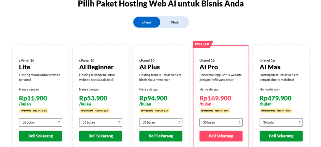 - Paket hosting murah dengan harga transparan, tanpa biaya tersembunyi.